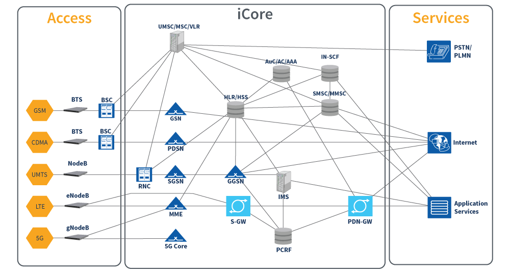iCore® 2G / 3G / 4G Red central multi tecnología GSM / 3G / 4G Red central multitecnología